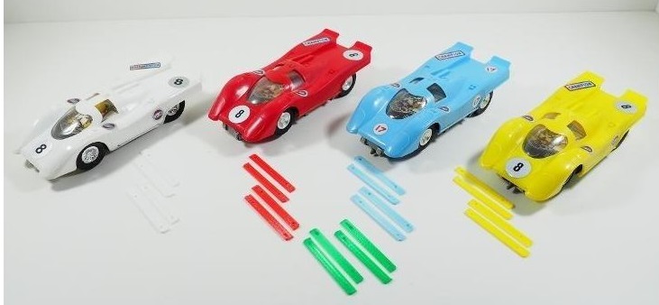 Náhradní neoriginální opravný díl úchytů pro ites autodráhové autíčko Porsche 917. Jedná se o díl s dirkami pro přichycení podvozku ke karosérii pomocí držáku, které jsou často prasklé.